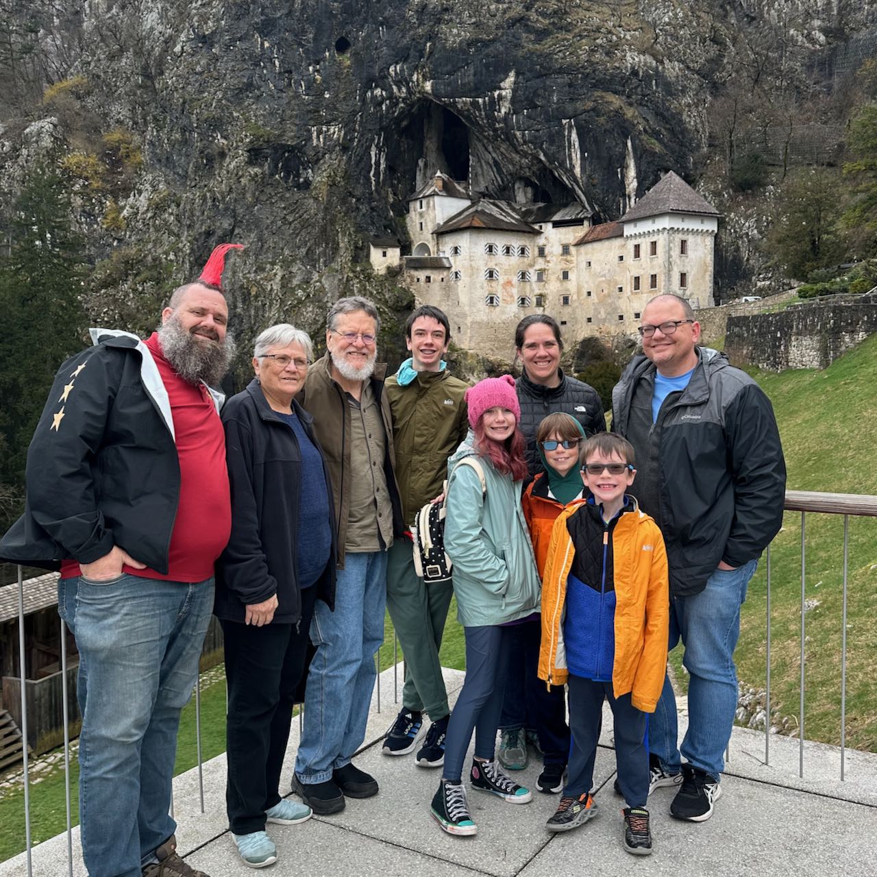 The Big Trip HPW, May 23, 2025May 23, 2025 After some genealogy breakthroughs during the Covid shutdown regarding our family in Slovenia I set a goal of one day traveling there to get a better sense of what our family left and what they left behind. In March of 2024 I was able to make this trip a reality not only for myself, but for my kids, brother, parents and husband. Our Slovenia trip started with an overnight flight through Paris then to Ljubljana for our party of 10. We arrived to pick up our van (a manual 9 passenger James lovingly drove) and headed to a lovely B&B in Tačen. Dvor Tačen was our home base for the first few days with lovely hosts, spacious rooms and a delicious cafe. First up was a food tour in downtown Ljubljana. We hit 6 restaurants, with plenty of stops along the way for art and architecture. First up was a restaurant with a turnip/barley stew and the infamous pumpkin seed oil. We then headed down the street to the for Carniolan Sausage. This was the kids’ favorite Slovenian of the trip! Next was a more traditional meat/cheese board (with more wine of course!) And then a lovely seafood stop with a small fried white fish we ate like fries and grilled sardines. We wrapped up the evening on top the Ljubljana skyscraper (all 7 floors!) With Gibanica layer cake. The food tour upon landing was a working strategy for our Paris trip the year before and while we may have had a kid fall asleep during the meat/cheese course, it was a good way to help us get some good walking and sunshine in to counteract the jet lag, get a brief overview of Llubljana and try a lot of little dishes along the way. The famous triple bridge Sour parsnip soup and pumpkin seed oil Charcuterie and cider! A fishy stop! After a full night’s sleep, we then headed back into Ljubljana. We picked up Ljubljana cards at the airport that were bus passes and museum entry passes combined. It was pretty rainy and overcast, so first up was a fun stop with the kids at the Museum of Illusions on the recommendation of a Bozeman friend! So much fun! Then we headed up to Ljubljana castle, which felt like a must do. However, our most exciting stop of the day was scheduled for the afternoon when we met with our cousins in the house where my great, great, great grandfather, Gaspar Setina was born in! The family were gracious hosts with the younger generation generously serving as interpreters for the older generations as we shared photos, stories, family trees and FOOD! The family had prepared a Slovenian feast for us complete with potica, cured meats, creme cake, and more! The next day was when we hit the big three tourist attractions of Slovenia. They are touristy and popular for a reason and I couldn’t imagine coming to Slovenia and not seeing them. First up was the Postonja Caves. After a 15 minute, fast and narrow train ride we then took about a 45 minute meander through a large, gorgeous cave system and then a return train ride. We even saw the infamous olms or cave salamanders. Next up was Predjama Castle. This was a very fun castle to explore up and down through the castle and the cave it was built into. Finally we headed to Lake Bled. The weather wasn’t the greatest but we took an expertly rowed Plecnca boat to the island where we took a coffee and potica stop before heading back. Our last stop of the day was the Bled castle, another interesting castle to explore. Though it can be overwhelming and confusing, it’s so good for the kids to see artifacts and change from over 2000 years. We closed out the day with a visit to the gostilina near our hotel for some home cooked deliciousness. The next day was our second day with a tour guide to explore some more rural areas of Slovenia where my dad’s paternal grandmother came from. Our first stop was at a Honey place and while it was the wrong time of year to see the bees or harvesting, they did an excellent job explaining the process of honey harvesting and shared tastes of their many delicious products. Then our guide took us to a museum of telecommunications housed in (what else) the local castle/mansion. The kids connected calls on a switch board, sent messages by morse code and saw plenty of Nokia phones from their parents’ younger years on display. Next up we headed to Nova Oselica/Savodenj. Our guide arranged a stop for us to visit the local church on the hill where our great, great, great, great grandfather, Anton Zajc (Seitz) carved the alters and where my dad’s grandmother was baptized. Afterward, she helped us translate with the family who owns the property where our family came from, including the carved cellar entry way. They graciously welcomed us in liquers, cookies and stories and research of our extended family. Their middle school son had recently done a report on our family members and they gave us a copy of it. It was a beautiful visit, and a beautiful property and gave us a sense of the rural area Grandma Pozun left. Next up we headed to Domzale, the area where my dad’s maternal grandfather came from. We stopped in at the Straw Hat Museum, Roman the guide was a fantastic host who walked us through the straw hat making process, which may or may not connect to a series of photos I have of the Majdics of that area harvesting hay. We then found a park and mansion that at one point was owned by our extended family and a monument to Peter Majdic. I dug a little deeper into that with a post here. We wrapped up with a short visit to the Kamnik medieval town for Burek and coffee and a meat vending machine! The next day we headed back into Ljubljana for some last minute snacks and delicacies and for the kids to do some shopping. We wrapped up with a gorgeous sunny day at the meat market where a series of school tour groups enjoyed people watching Uncle Matt’s mohawk and Catherine got her mini-Potica! Our last days were in the rural village of Čanje. The house had a gorgeous view, made delicious wine and had plenty of neighborhood anima